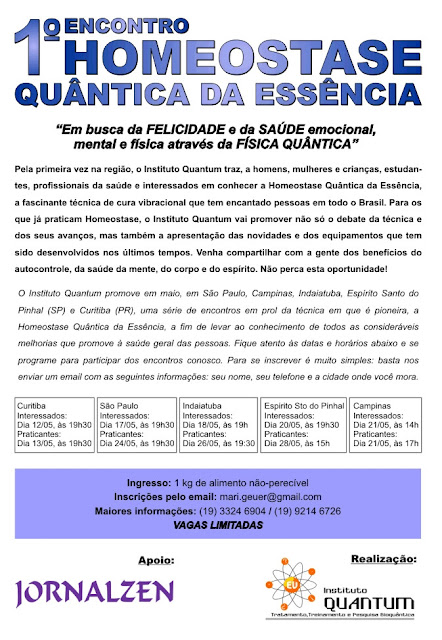 Devido ao grande número de pessoas que já praticam a Homeostase e a pedido de muitos de nossos clientes e alunos, estamos dando início através deste evento a uma nova fase do Instituto Quantum.
