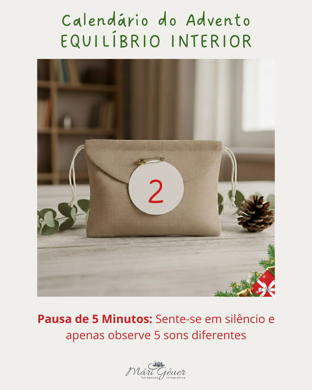 O verdadeiro equilíbrio não se constrói em grandes gestos, mas em pequenos momentos de presença. E hoje, no segundo dia do nosso Calendário do Advento Equilíbrio Interior, convido você a experimentar uma das práticas mais simples — e mais poderosas — que existem: uma pausa de cinco minutos em silêncio.