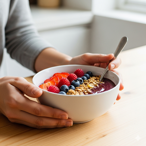 - Café da Manhã com Atenção Plena: Prepare algo nutritivo que você goste. Durante a refeição, evite distrações. Mastigue devagar, sinta os sabores e texturas. Este momento é só seu.